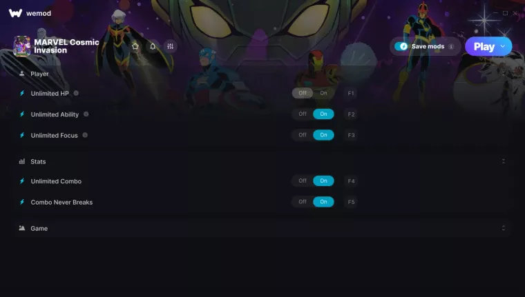 Marvel Cosmic Invasion "Трейнер +6 от WeMod : Здоровье, фокус, комбо пр"