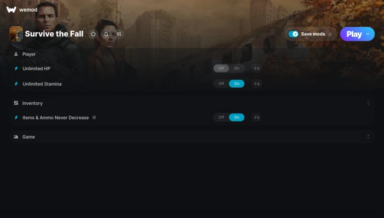 Функции: Unlimited HP - Неограниченное здоровье Unlimited Stamina - Неограниченная выносливость Items & Ammo Never Decrease - Предметы и боеприпасы не уменьшаются при использовании Game Speed - Скорость игры Инструкция: Скачайте и установите WeMod, создайте бесплатный аккаунт. Найдите нужную игру в панели слева и добавьте путь к исполняемому файлу игры. Загрузите игру, активируйте функции