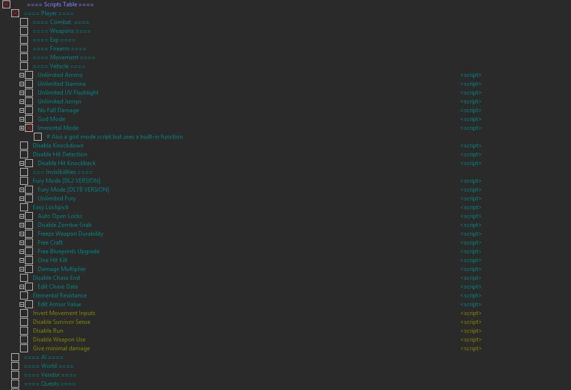 Функции таблицы: Player God Mode – Режим Бога Infinite Health – Бесконечное здоровье Infinite Stamina – Бесконечная выносливость Infinite Oxygen – Бесконечный кислород Infinite Ammo – Бесконечные патроны No Reload – Без перезарядки No Spread – Без разброса No Recoil – Без отдачи Rapid Fire – Быстрая стрельба Super Damage – Супер урон One Hit Kills – Убийство одним ударом No Fall Damage – Нет