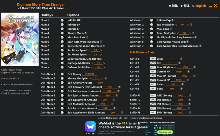Функции трейнера: Player Mods God Mode/Ignore Hits – Режим Бога/Игнорирование ударов Infinite HP – Бесконечное HP Infinite EP – Бесконечное EP Infinite CP – Бесконечное CP Max Charge Gauge – Максимальная шкала заряда Max Brave Gauge – Максимальная шкала храбрости Infinite Overdrive – Бесконечный Overdrive Max Speed/Minimum Delay – Максимальная скорость/Минимальная задержка Max Move Range –