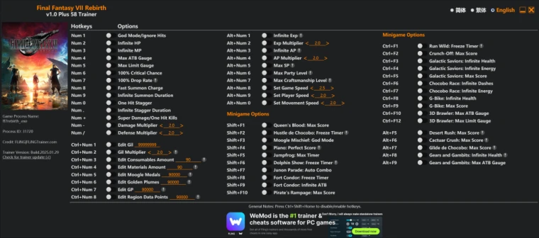 Final Fantasy 7 Rebirth "Трейнер +58 от FLiNG: Редактор игрока, предметов и мини-игр"