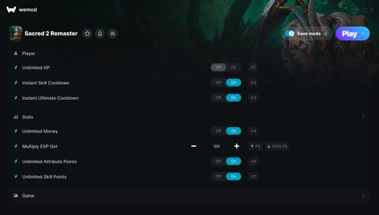 Функции: No Damage - Полная неуязвимость Unlimited Stamina - Неограниченная выносливость Stamina Consumption - Потребление выносливости Unlimited Jetpack Fuel - Неограниченное топливо для реактивного ранца One-Hit Kills - Убийство с одного удара Invisibility - Невидимость Damage Percentage - Процент урона Damage Multiplier - Множитель урона Carbon Multiplier - Множитель углерода Aluminum