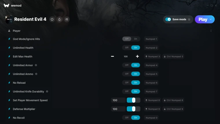 Функции: Numpad 1 — неуязвимость; Numpad 2 — без усталости; Numpad 3 — без подозрения; Numpad 4 — неограниченная продолжительность бега; Numpad 5 — изменить очки навыков; Numpad 6 — большая грузоподъемность; Numpad 7 — неограниченный опыт; Numpad 8 — умножитель опыта; Numpad 9 — изменить скорость игры; Numpad 0 — большой урон/быстрые убийства; Numpad. — умнржитель урона; Ctrl+Num 1 — изменить