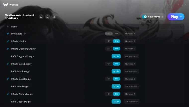 Функции таблицы: Important enableAfterLoadingIntoMap – Включить после загрузки на карту enableBeforeUsingCheats – Включить перед использованием читов magnets – Магниты roll, banish, blasphemy, seal – Заклинания или действия attackSpeed – Скорость атаки movementSpeed – Скорость движения maxHealth+ – Максимальное здоровье currentHealth – Текущее здоровье godMode – Режим Бога