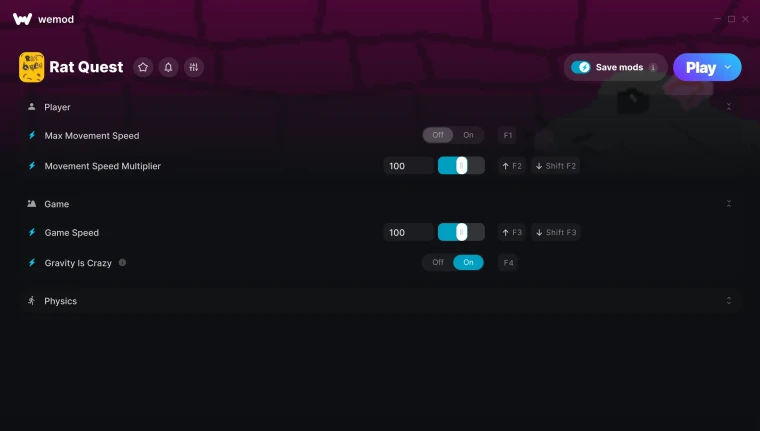 Rat Quest "Трейнер +10 от WeMod: Редактор игрока и физики"