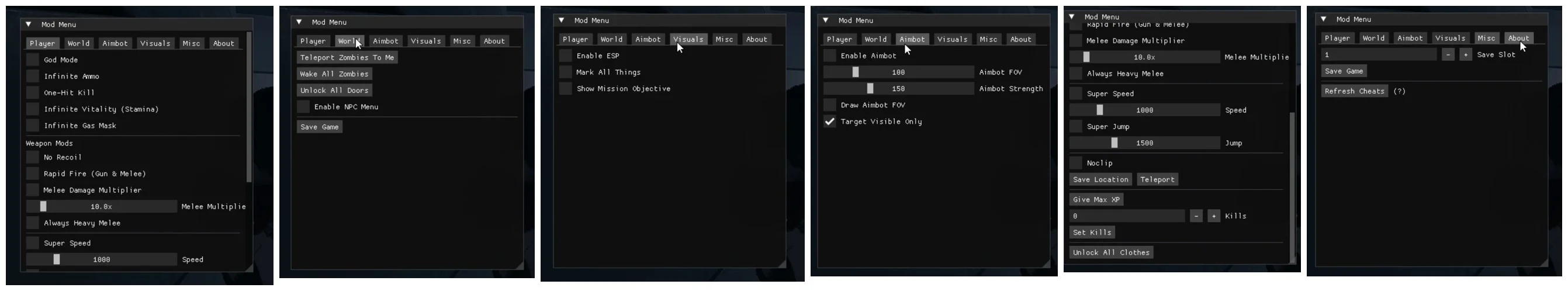 Функции таблицы: Items have zero weight – Предметы не имеют веса Fast taming of baby creatures – Быстрое приручение детёнышей Freeze Body Temperature – Фиксированная температура тела Always Max Building Stability – Всегда максимальная устойчивость построек Tools & Weapons don't receive damage – Инструменты и оружие не изнашиваются Inf. Points – Бесконечные очки Food Status Effect Last