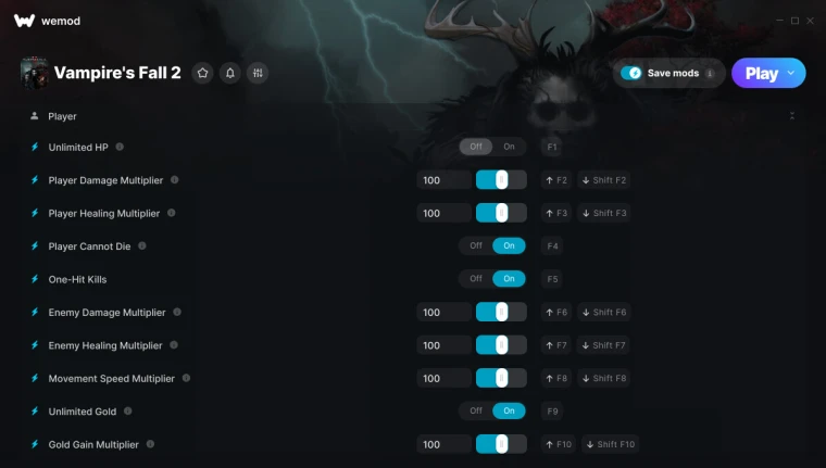 Функции: Add Health - Добавить здоровье Full Health - Полное здоровье God Mode - Режим бога Add Power - Добавить силу Set Max Power - Установить максимальную силу Unlimited Umbra - Неограниченный Умбра Super Speed - Супер скорость No Power - Нет силы Unlimited Health Flask - Неограниченная фляга здоровья Kill Hostiles - Убить противников Game Speed - Скорость игры Slow Motion - Замедленное