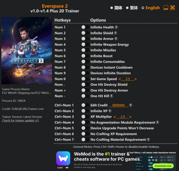 Во время игры нажимайте на клавиши указанные в трейнере.