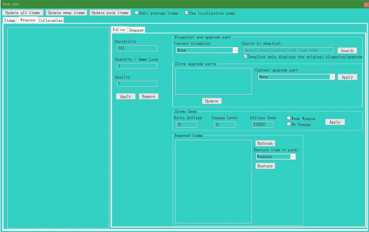 DLTB Редактор рюкзака, оригинальная версия основана на базовом каркасе DL1 Backpack Editor, созданном ray2160, улучшена для DL2 и обновлена для Beast.