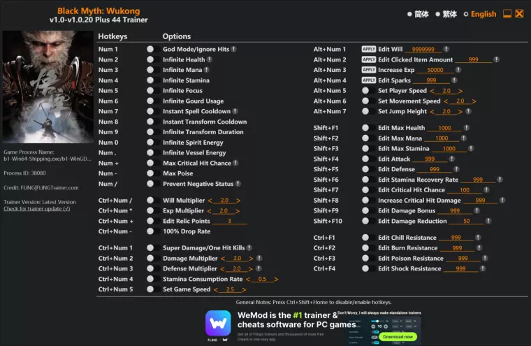 Скачать файл: Black_Myth_Wukong_v1.0-v1.0.20_Plus_44_Trainer.rar