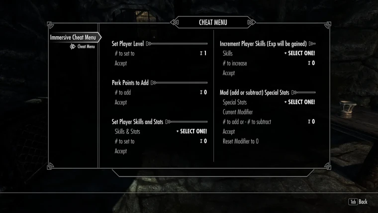 Этот мод позволяет редактировать характеристики и навыки игрока, увеличивать навыки, добавлять очки перков, устанавливать уровни персонажа, а также изменять значения актёра, которые не сохраняются после сохранения игры.