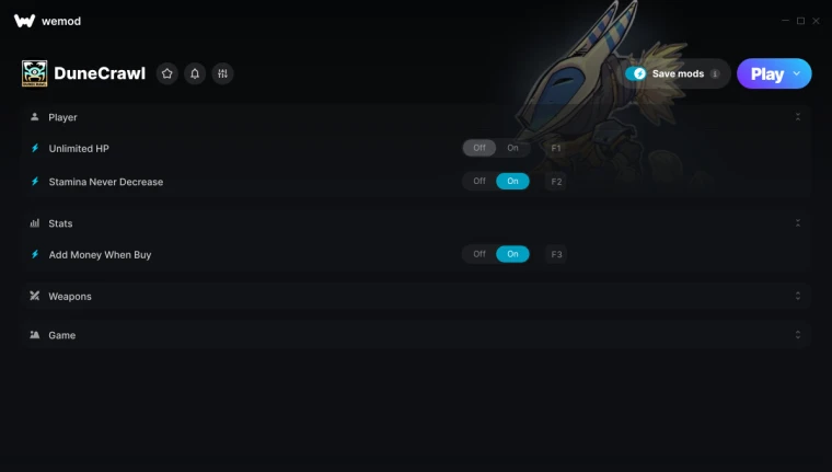 DuneCrawl "Трейнер +6 от WeMod: Редактор игрока, денег, оружия"