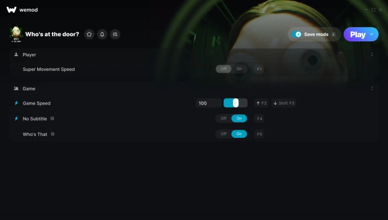 Who's at the door? "Трейнер +5 от WeMod: Скорость, выносливость, субтитры и пр"