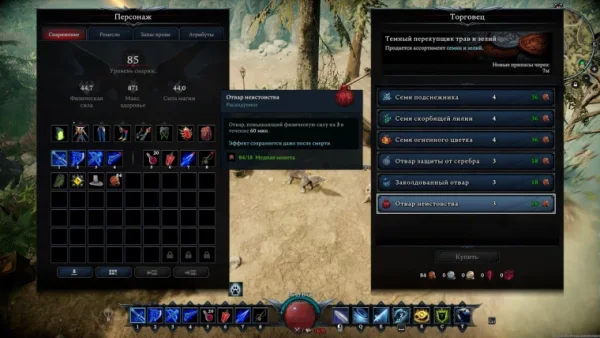 Также семена можно приобрести у торговцев, расположенных в различных регионах: в лесах Фарбейна, на фермах Данли и в Брайтхейвене. Ассортимент зависит от зоны, как и валюта — где-то используется медь, в других местах — серебро или золото. Выбирайте подходящий рынок, чтобы купить недостающие растения для своего сада.