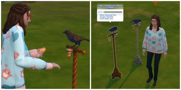 У ворона есть три ключевых потребности: настроение, сытость и состояние насеста. Чтобы питомец чувствовал себя комфортно, симам нужно регулярно за ними следить.