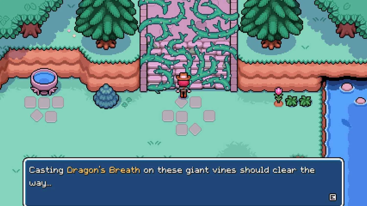 Выполнение этих заданий требует сбора определенных ресурсов, необходимых для разрушения Огненной печати. После получения заклинания "Дыхание дракона" можно отправляться к стене лиан в Лесные Глубины. Просто выберите заклинание в инвентаре и примените его, чтобы расчистить путь.