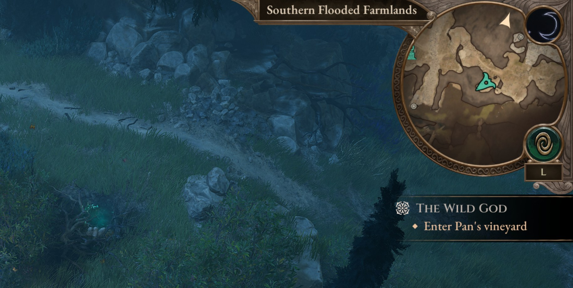 Для решения загадки потребуется найти определенное существо. Нужная вам черепаха находится совсем рядом, к юго-западу от входа в руины. Место, где она обитает, дополнительно отмечено интерактивным объектом «Черепашьи яйца».