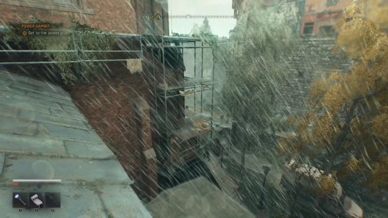 Оказавшись внутри, герой сталкивается с запертой дверью. На первый взгляд путь преграждён, но именно здесь начинается первая часть подъёма. Необходимо найти металлическую решётку, прислонённую к деревянным доскам, и использовать её как опору для прыжка к балкам наверху. Иногда для этого требуется повторное нажатие прыжка, чтобы активировать вертикальный забег по стене.