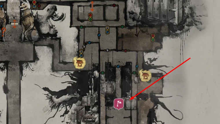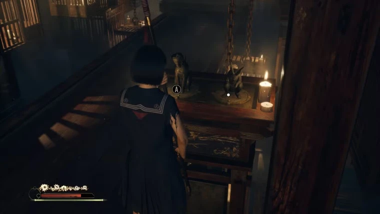 После выхода из средней школы Хинако оказывается в области Dark Shrine, где путь разделяется на несколько коридоров. Справа от центрального зала находится проход к комнате света — именно туда и нужно направиться. Доступ к ней откроется после взаимодействия со статуей лисы у левой двери главного входа.