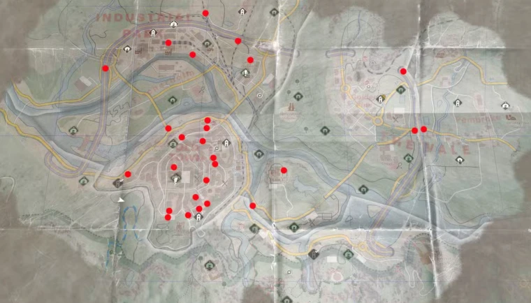 На карте Dying Light: The Beast муралы разбросаны по всем крупным зонам: