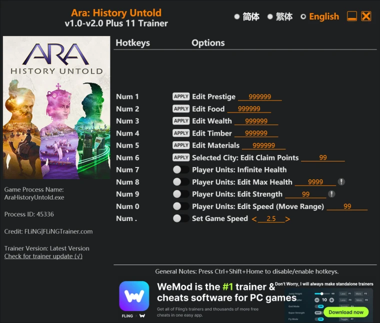 Ara: History Untold "Трейнер +11 от FLiNG: Престиж, богатство, еда и пр" [1.0 - 2.0]