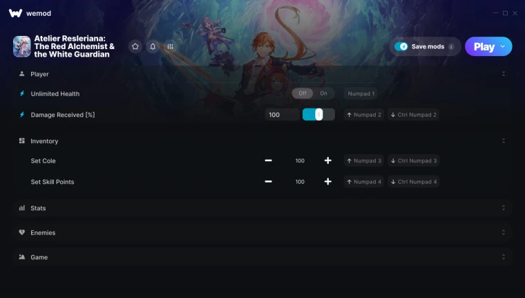 Функции: Unlimited Health - Бесконечное здоровье Damage Received [%] - Получаемый урон % Set Cole - Установить Коул Set Skill Points - Установить очки навыков Battle Experience Multiplier - Множитель боевого опыта Battle Cole Multiplier - Множитель Коула в бою Battle Skill Points Multiplier - Множитель очков навыков в бою One-Hit Kills - Убийства с одного удара One Hit Stun - Оглушение с