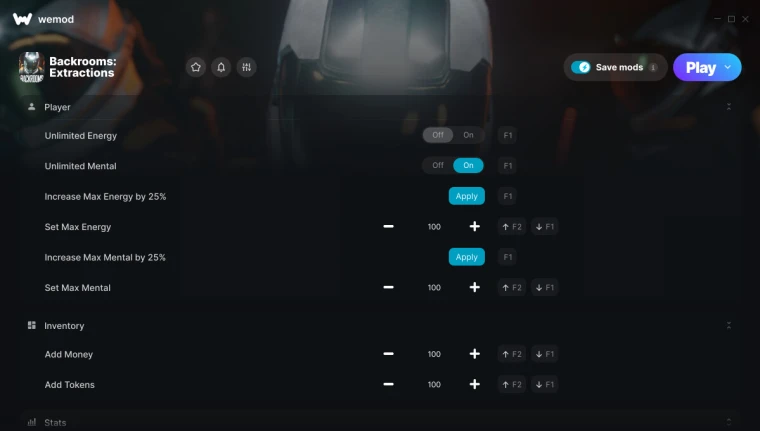 Backrooms: Extractions "Трейнер +19 от WeMod: Энергия, день, токены, опыт, скорость, открытые двери"