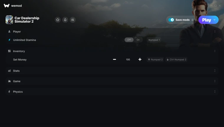 Car Dealership Simulator 2 "Трейнер +10 от WeMod: Деньги, выносливость, очки навыков и пр"