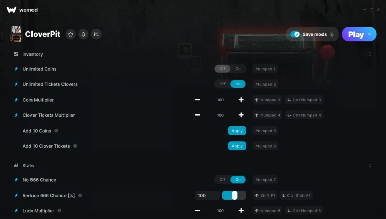 CloverPit "Таблица +7 для Cheat Engine от ColonelRVH: Деньги, билеты, вращения и пр" [1.1]