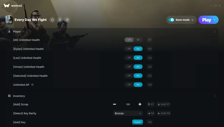 Every Day We Fight "Трейнер +17 от WeMod: Редактор игрока, инвентаря, оружия"