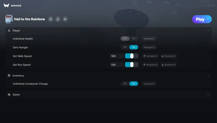 Hail to the Rainbow "Трейнер +6 от WeMod: Редактор игрока, инвентаря и скорости"
