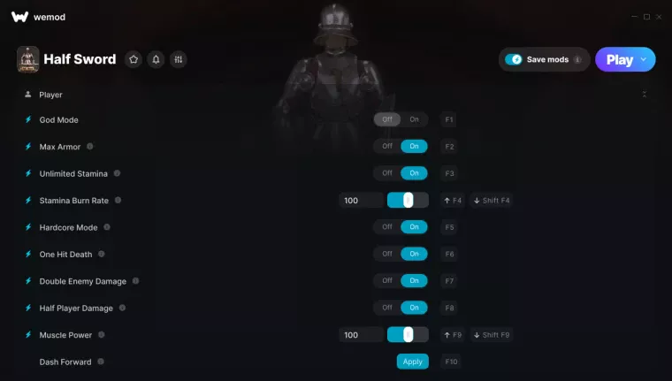 Half Sword "Трейнер +30 от WeMod: Редактор игрока, противников, предметов и оружия"