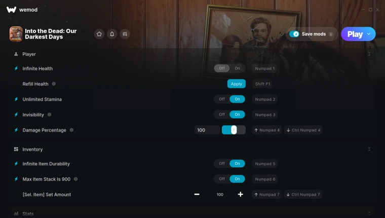 Into the Dead: Our Darkest Days "Трейнер 23 от WeMod: Здоровье, выносливость, патроны, невидимость и пр"