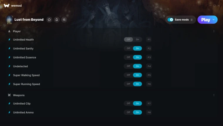 Lust from Beyond "Трейнер +8 от WeMod: Редактор игрока и оружия"