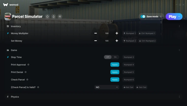 Избавьтесь от финансовых проблем! Мод MoneyEdit позволяет изменять количество денег в Parcel Simulator, чтобы вы могли делать всё, что захотите! Основная функция: Edit Money Amount — Изменение количества денег (устанавливайте любую сумму в игре) Как использовать: В игре нажмите Esc, чтобы открыть меню паузы Нажмите кнопку Edit Money Amount — Изменить количество денег на правой стороне меню В