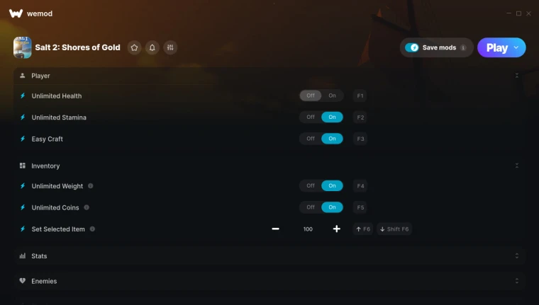 Salt 2: Shores of Gold "Трейнер +10 от WeMod: Здоровье, выносливость, опыт и пр"