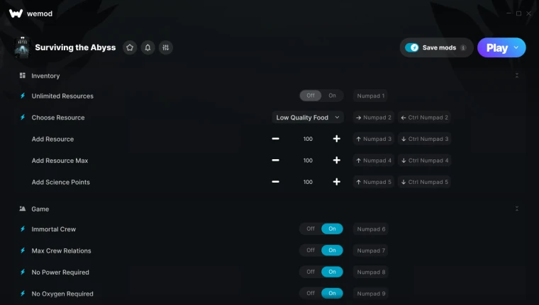 Surviving the Abyss "Трейнер +17 от WeMod: Ресурсы, кислород, строительство и пр"